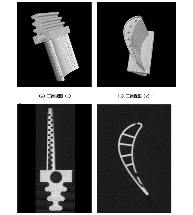 为了使上述所示X射线成像仿真结果能够构成具有广泛可用性的航空叶片X射线成像数据集,需要对该仿真算法进行正确性验证。而三维重建算法能够将X射线投影结果进行反投影计算,得到原三维模型。重建结果三维模型视图及其在x-y和有y-z方向上的截面图如下图图所示。